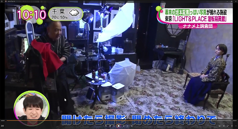 2020年9月26日(土)、TOKYO MXテレビで11時から「週末ハッピーライフ!お江戸に恋して 」番組内でライトアンドプレイス湿板写真館が紹介されました。