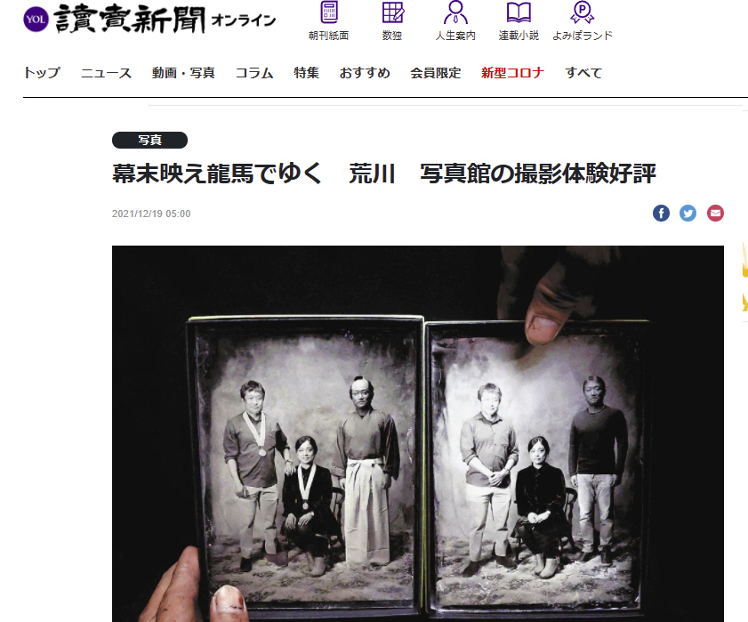 読売新聞に掲載されました。幕末映え龍馬でゆく 荒川 写真館の撮影体験好評
