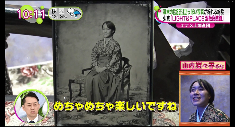 2020年9月26日(土)、TOKYO MXテレビで11時から「週末ハッピーライフ!お江戸に恋して 」番組内でライトアンドプレイス湿板写真館が紹介されました。