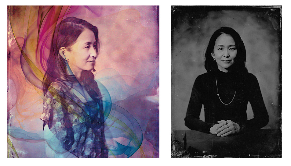 を湿板で撮影しました。左側のカラー写真は当店の湿板とデレクター清水 幹太さんによるAIでの作品です。